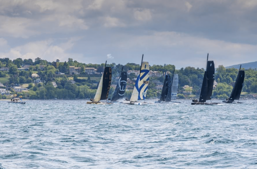 Sur l’eau, ce samedi aura donné des sueurs froides aux tacticiens et au comité de course tant le vent aura joué avec les nerfs. Ce vent d’ouest plus soutenu que prévu s’est « établi » au 220° mais oscillant du 180° au 240° avec des pressions très disparates et piégeuses, malgré tout, le spectacle en rade de Genève étaient au rendez-vous et les navigateurs avaient tous le sourire de retour au port.
